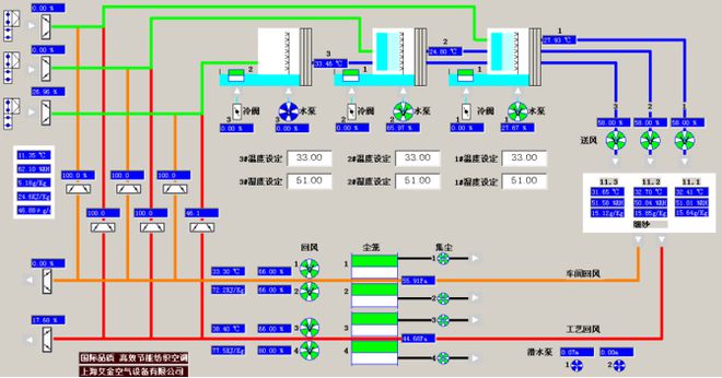 1、总装机功率比传统空调要少10-20%左右,车间温湿度智能控制,实现人机智能操控与交流,比传统车间温湿度控制提高效率10—15%。