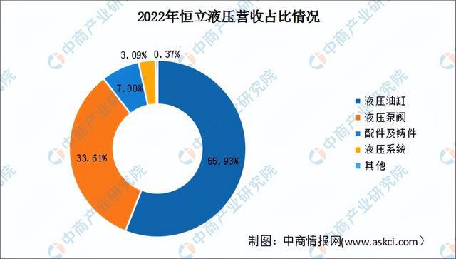 2023年前三季度,恒立液压实现营业收入63.44亿元,同比下降24.89%;实现归母净利润17.54亿元,同比增长0.25%。2022年主营产品包括液压油缸、液压泵阀、配件及铸件、液压系统,占比分别为55.93%、33.61%、7.00%、3.09%。